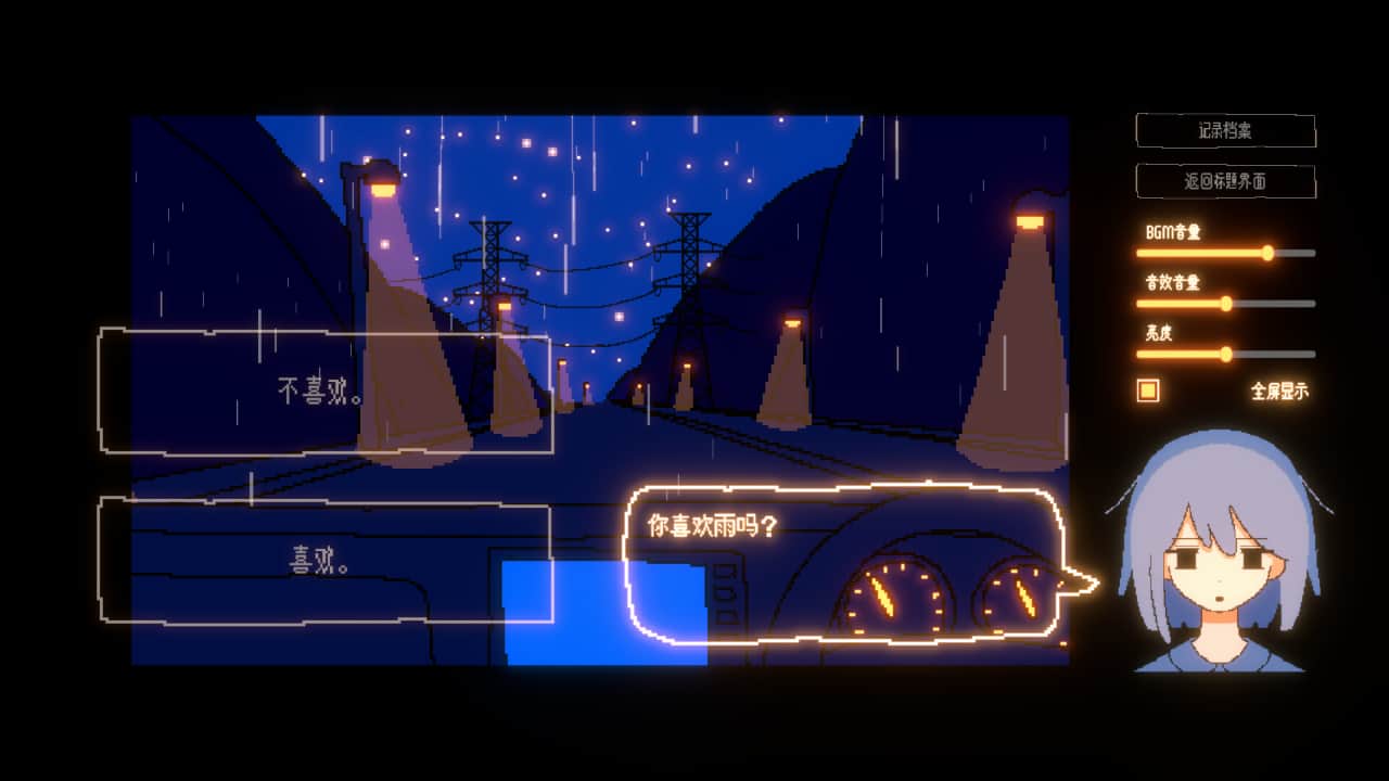 投稿用户28天前发布关注私信 游戏介绍 一部驱车行驶在雨夜,与少女进行对话的多结局短篇ADV。正视这片迷蒙的夜色与忐忑的心,尽可能地理解她的心情吧。 游戏截图 版本介绍 Build.22363262|容量791MB|官方简体中文|支持键盘.鼠标 特别注意 1、本站所有游戏均为投稿整理,如发现用不了或者失效链接可联系版主整理或者删除 2、本站资源为多段分布式存储和下载方式包含百度、天翼、阿里云、夸克、迅雷等各大网盘,支持迅雷和IDM下载。(常用为百度,天翼及阿里云) 3、本站所有游戏均为一键绿色版,安装后双击桌面快捷即可开始游戏,无需其他设置或者开启其他平台。(极个别游戏特殊启动的均有图文或者视频教程,请仔细观看) 4、本站所有游戏均支持鼠标,键盘,手柄游玩,但是手柄牌子和兼容的组合较多我们不负责排查游戏的手柄问题。 5、资源均为测试上传,如不能运行请参照下载页系统最低配置及导航-常见问题 6、单独购买游戏在30天内无限制下载安装更新,过期无法下载和安装更新请知晓,安装后永久可玩,本站会员没有本条限制。 7、如需开通会员,请认真阅读本站提供的服务以及确认您是否需要再进行开通 THE END动作冒险# 单人# 冒险# 独立# 剧情丰富# 2D# 像素图形# 放松# 黑暗# 选择取向# 心理恐怖# 多结局# 视觉小说# 对话# 心理# 基于文字 喜欢就支持一下吧点赞77 分享QQ空间微博QQ好友海报分享复制链接收藏