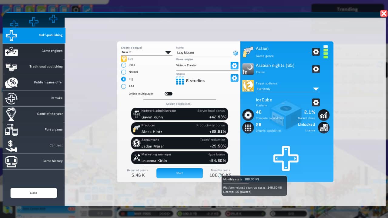 投稿用户21天前发布关注私信 游戏介绍 您即将是一间游戏公司的创始人。 至于在哪里开始建立您的游戏公司,这完全取决于您。您完全可以从一个车库开始您的生涯。或者您如果不愿意窝在小地方,您可以去收购一个地方,再去发展您的游戏公司。 在一天结束后,您的决定将会让您的游戏公司变得成功,并且能够在游戏历史上涂抹浓重的一笔。 游戏截图 版本介绍 Build.22310321|容量365MB|官方简体中文|支持键盘.鼠标 特别注意 1、本站所有游戏均为投稿整理,如发现用不了或者失效链接可联系版主整理或者删除 2、本站资源为多段分布式存储和下载方式包含百度、天翼、阿里云、夸克、迅雷等各大网盘,支持迅雷和IDM下载。(常用为百度,天翼及阿里云) 3、本站所有游戏均为一键绿色版,安装后双击桌面快捷即可开始游戏,无需其他设置或者开启其他平台。(极个别游戏特殊启动的均有图文或者视频教程,请仔细观看) 4、本站所有游戏均支持鼠标,键盘,手柄游玩,但是手柄牌子和兼容的组合较多我们不负责排查游戏的手柄问题。 5、资源均为测试上传,如不能运行请参照下载页系统最低配置及导航-常见问题 6、单独购买游戏在30天内无限制下载安装更新,过期无法下载和安装更新请知晓,安装后永久可玩,本站会员没有本条限制。 7、如需开通会员,请认真阅读本站提供的服务以及确认您是否需要再进行开通 THE END模拟经营# 单人# 独立# 模拟# 策略# 休闲# 2D# 沙盒# 管理# 建造# 资源管理# 等角视角# 经济# 卡通风格# 重玩价值# 城市营造# 可模组化# 资本主义# 编程# 游戏开发# 游戏制作 喜欢就支持一下吧点赞82 分享QQ空间微博QQ好友海报分享复制链接收藏