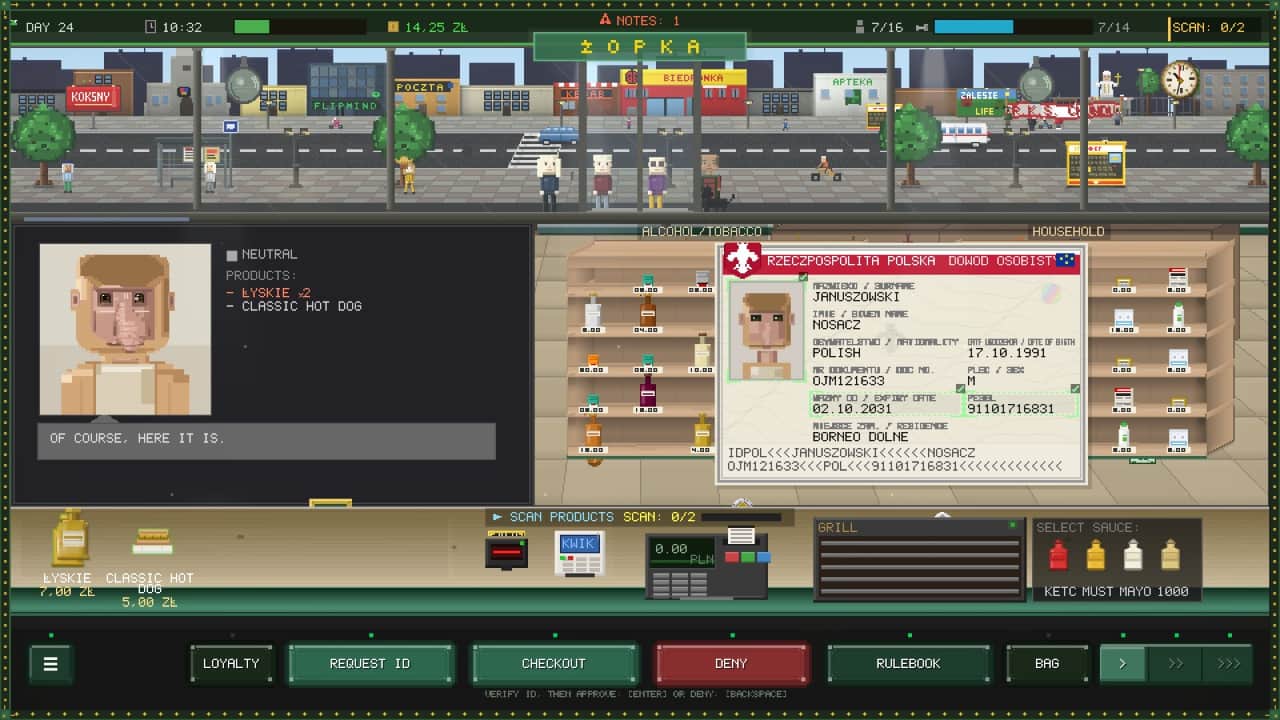 投稿用户9天前发布关注私信 游戏介绍 你失去了煤矿的工作,现在成了波兰最具标志性的便利店的收银员。扫描商品、查验证件、烤热狗,然后试着用剩下的钱养活全家。一部关于在晚期资本主义中求生的黑色喜剧,一张小票接一张小票。 游戏截图 版本介绍 Build.22740562|容量273MB|官方简体中文|支持键盘.鼠标.手柄 特别注意 1、本站所有游戏均为投稿整理,如发现用不了或者失效链接可联系版主整理或者删除 2、本站资源为多段分布式存储和下载方式包含百度、天翼、阿里云、夸克、迅雷等各大网盘,支持迅雷和IDM下载。(常用为百度,天翼及阿里云) 3、本站所有游戏均为一键绿色版,安装后双击桌面快捷即可开始游戏,无需其他设置或者开启其他平台。(极个别游戏特殊启动的均有图文或者视频教程,请仔细观看) 4、本站所有游戏均支持鼠标,键盘,手柄游玩,但是手柄牌子和兼容的组合较多我们不负责排查游戏的手柄问题。 5、资源均为测试上传,如不能运行请参照下载页系统最低配置及导航-常见问题 6、单独购买游戏在30天内无限制下载安装更新,过期无法下载和安装更新请知晓,安装后永久可玩,本站会员没有本条限制。 7、如需开通会员,请认真阅读本站提供的服务以及确认您是否需要再进行开通 THE END休闲益智# 独立# 氛围# 模拟# 休闲# 2D# 彩色# 可爱# 欢乐# 像素图形# 风格化# 复古# 喜剧# 生活模拟# 老式# 指向点击# 黑色幽默# 烹饪# 网络梗# 商店管理# 90 年代 喜欢就支持一下吧点赞40 分享QQ空间微博QQ好友海报分享复制链接收藏